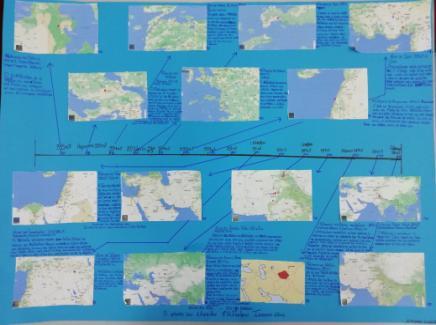 Χρονογραμμή και χάρτεςκολάζ με τις μάχες του Μεγάλου Αλεξάνδρου στο μάθημα της Ιστορίας από τη