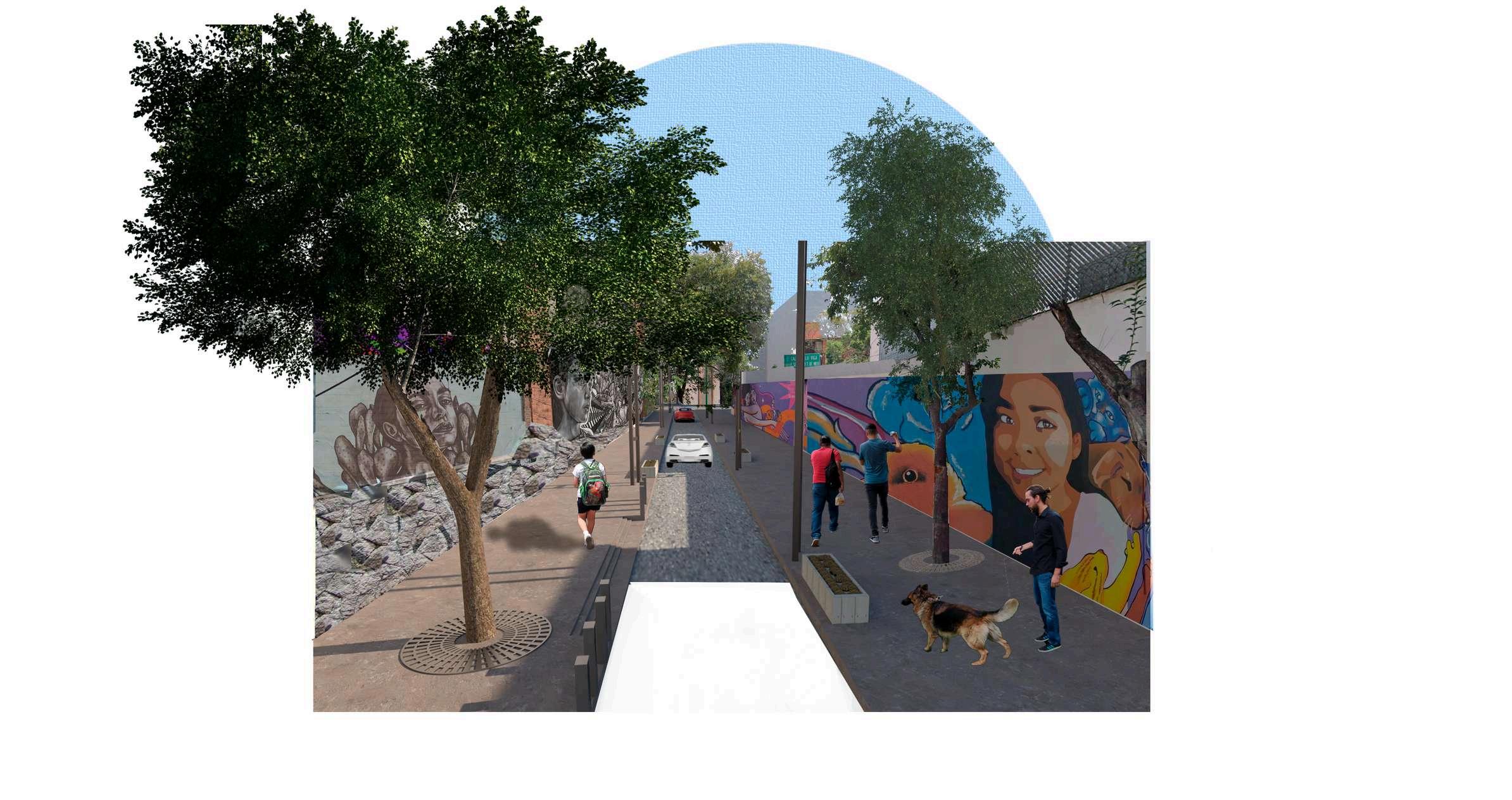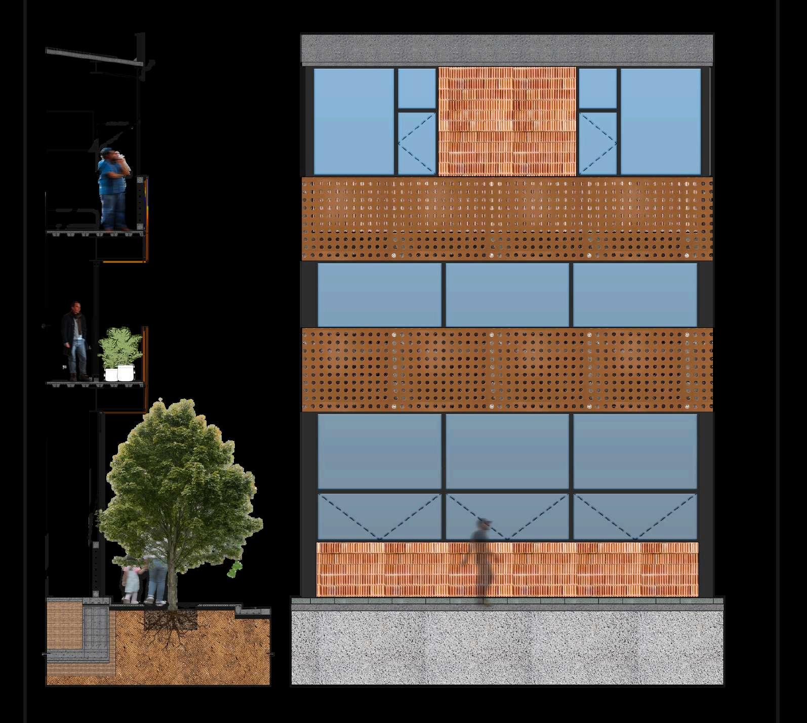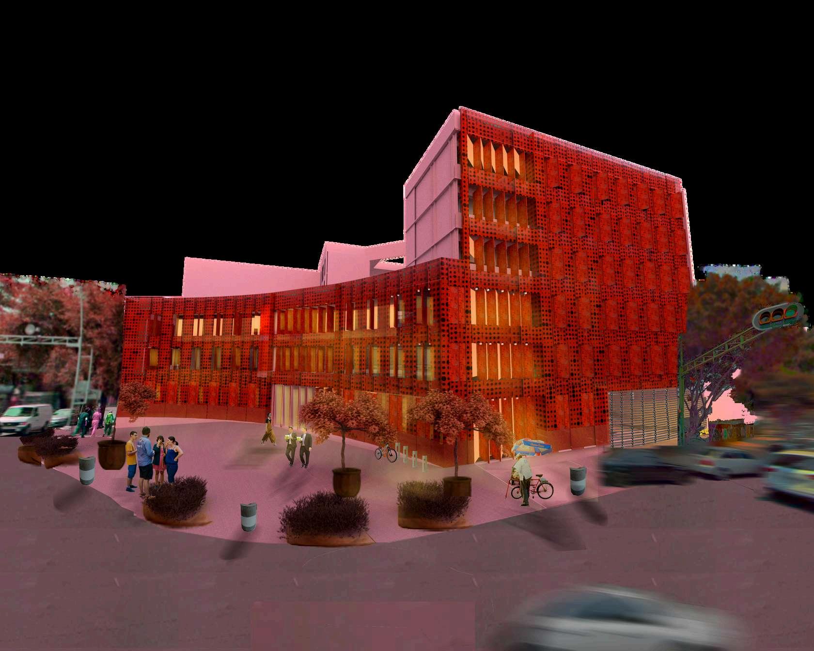 La postura de la integración de la imagen al contexto urbano existente es por semejanza. Con el uso de materiales aparentes, como tabimax aparente, lamina perforada, vigas aparentes, columnas con acabado negro mate cancelerías de aluminio acabado bronce oscuro; retomando así un aspecto industrial de la colonia.