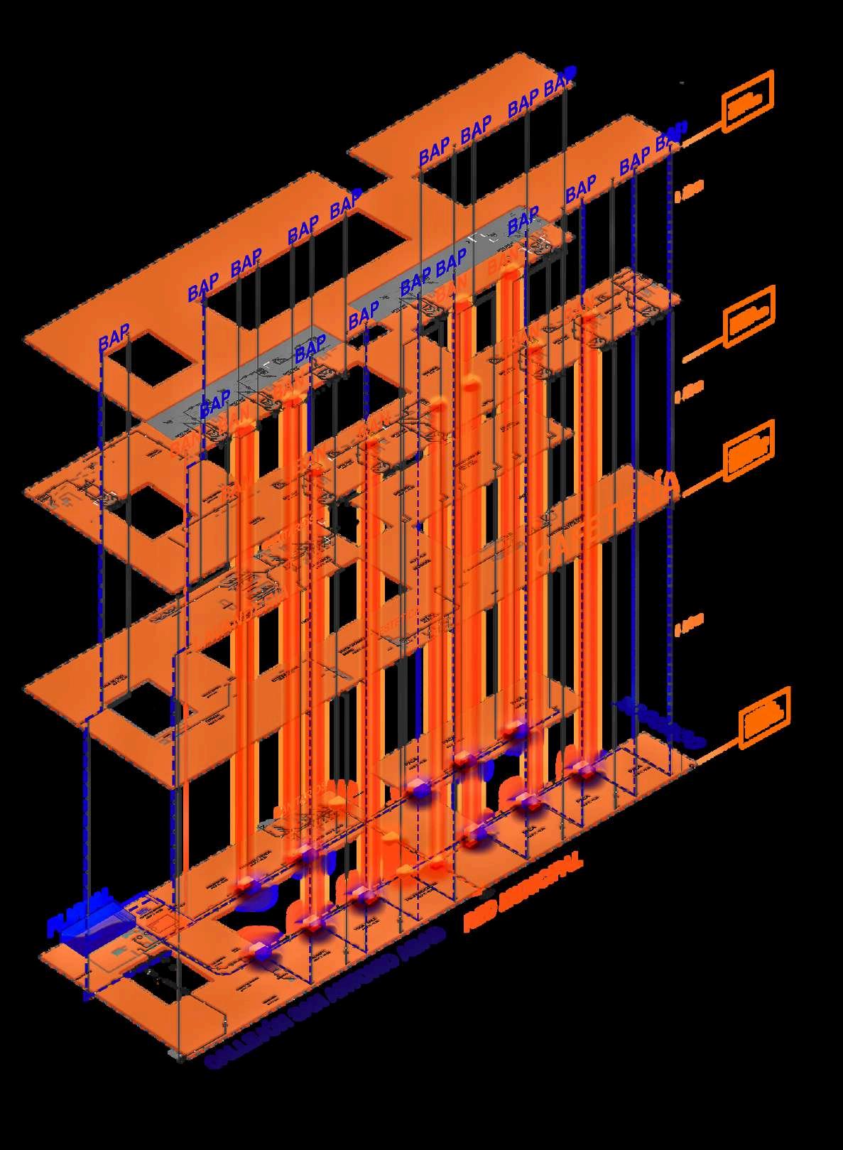 Para la captación de aguas pluviales tenemos una superficie de 1396m2 con 18 bajadas pluviales las cuales se dirigen a un sistema de filtración para posterior almacenaje, el cual cuenta con un almacenamiento para 70 700L.