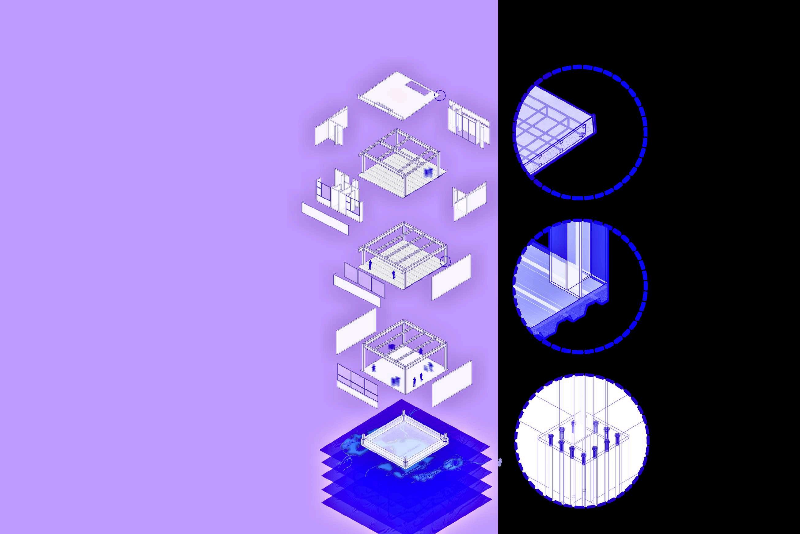 Para el almacenamiento están proyectadas tres cisternas. 1) Agua potable de 90 500 L. 2) Agua filtrada pluvial de 70 700 L. 3) Protección contra incendios de 70 700 L.
