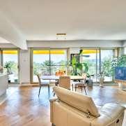 Spacious apartment with a terrace of 220 m² with an incredible sea view. Decorated with taste and modernity, consisting of 4 rooms equipped with air conditioning and access to the terrace, a separate kitchen and equipped with access to the terrace, a living room that has a dining area inside and outside on the terrace, office, laundry. 2 garages.