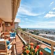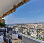 A proximité immédiate de la Place Masséna, Coulée verte et du centreville. En 5ème et dernier étage (avec ascenseur) d'un immeuble niçois, 3 pièces de 122m² (79m² en loi Carrez) en très bon état, terrasse de 42m² à ciel ouvert, vue complètement dégagée, toits de la ville. Possibilité d'un double parking extérieur à la location. RARE sur le marché !