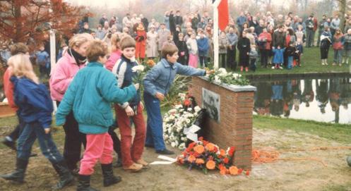 Bij het herdenkingsmonument aan de Voorstraat met wethouder P. Boogaard.