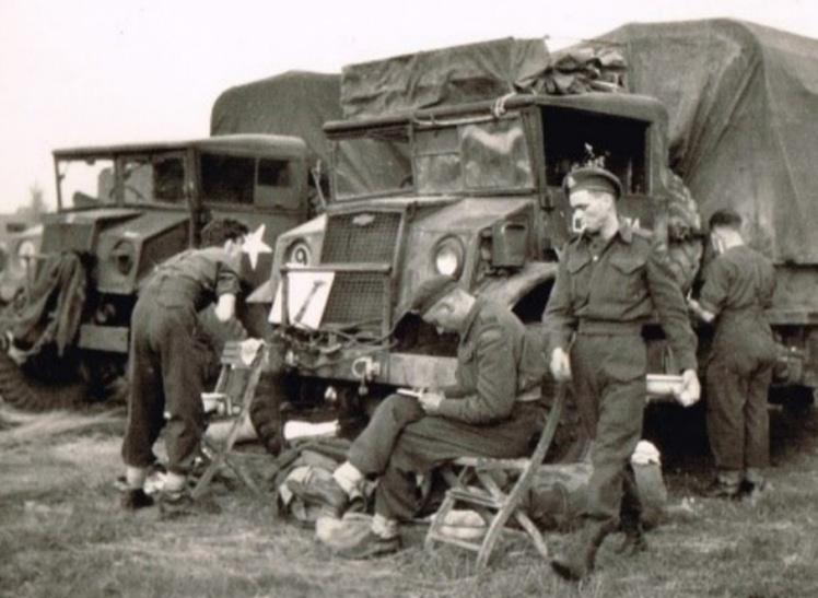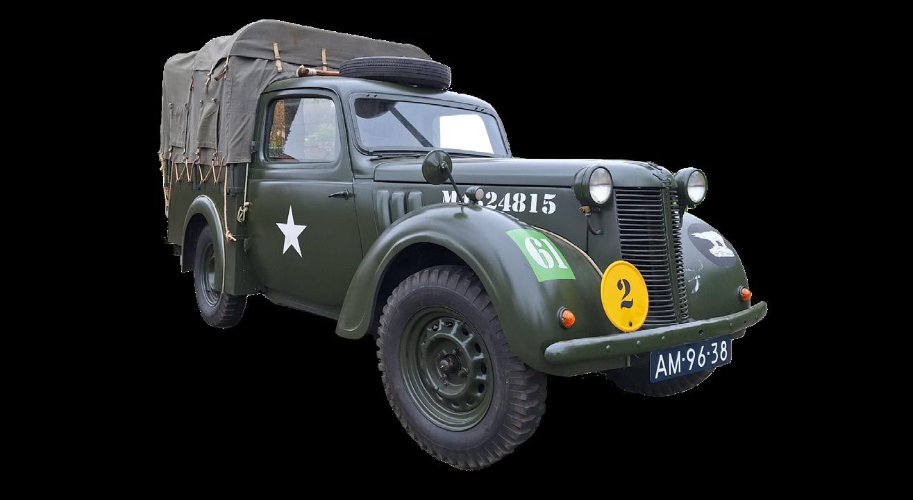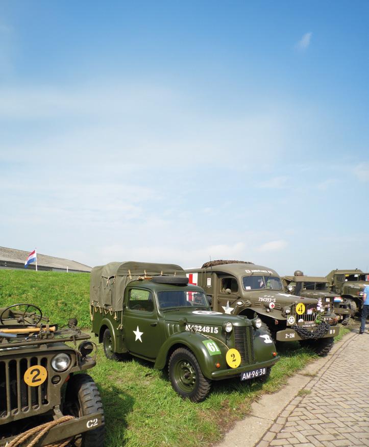 22 Groene voertuigen geven de wederopbouw een militair tintje Nadat de geallieerden waren vertrokken, bleek een deel van de vrachtwagens achter te blijven in Europa. Ook door de Hoeksche Waard reden na de oorlog verschillende militaire voertuigen.
