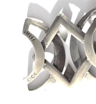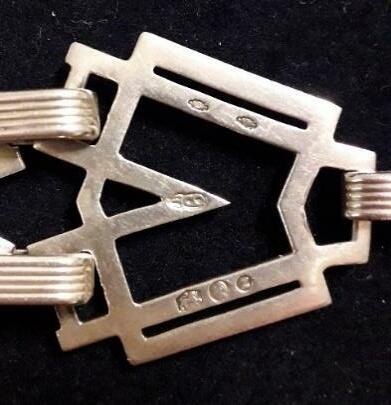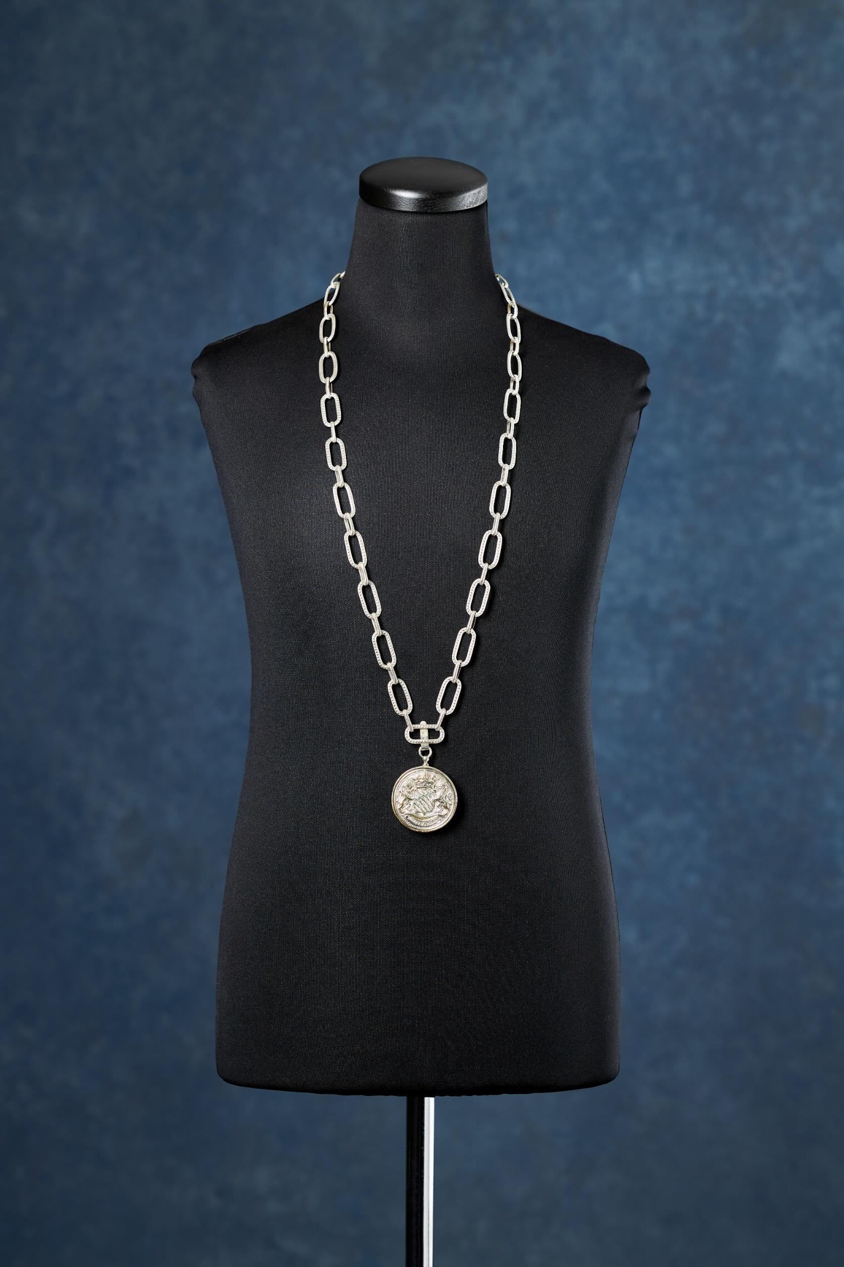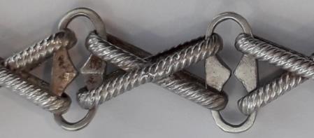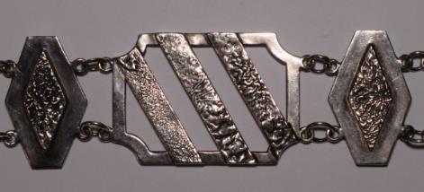 Deketenisgemaaktvanhet1e gehaltezilver(92,5%),isvoorzienvan hetmeestertekenenhet Rijkskeurmerkenjaarlettermerk.De schakelszijngegotenenbestaanuit tweecirkelsmeteendwarseverbinding.