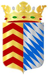 Deblazoeneringvanhetwapenluidtalsvolgt: “Gedeeld;Iingoudeengolvendedwarsbalkvanazuur, vergezeldvandrieschuinkruisjesvankeel;II schuinrechtsspitsgeruitvanazuurenzilver;hetgeheel omgevendooreenversmaldeschildzoomvansinopel. Hetschildgedektmeteengoudenkroonvanvijf bladerenengehoudendoortweeleeuwenvangoud, getongdengenageldvankeel.”