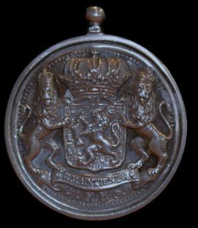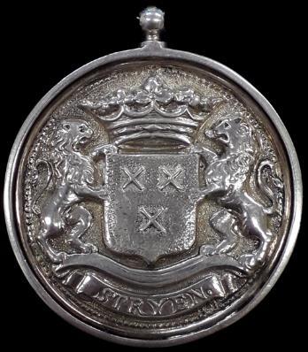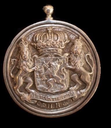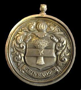 Inartikel90vanditreglementwordtbepaald: “Burgemeesterenassessorenzullenbevoegdzijn,omindeuitoefeningvan hunnenbedieningeenonderscheidendteekenvanhunnewaardigheidte dragen,hetwelkbestaanzalineenenpenning,waaropaandeeenezijde hetwapenvanhetRijk,enaandeanderedenaamdergemeente gegriftis. Dezepenningzal,aaneenbreedoranjelintomdenhalsgedragenworden.” Deburgemeestersvanplattenlandsgemeentenhoefdenslechtseen oranjelintmeteenpenningtedragen.Deenezijdevandezepenning moesthetRijkswapenbevatten;deanderekantdenaamvande gemeente.Menmaakteditonderscheidtussenstedenendorpen vermoedelijkomdatdeaanschafvaneenambtskostuuminkleinere plaatsentekostbaarwerdgeacht.
