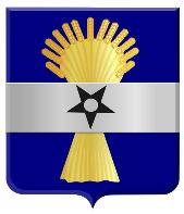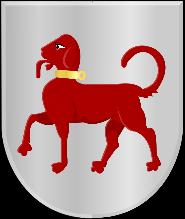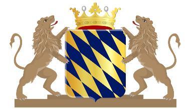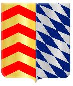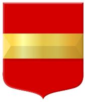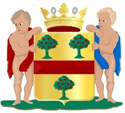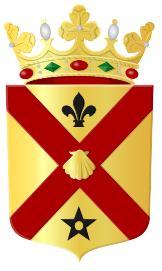 Ingoudeengolvendedwarsbalkvankeel,beladen meteenschelpvangoud,bovenvergezeldvaneen leliemetafgesnedenvoetenbenedenvaneen vijfpuntigspoorrad,beidevansabel;hetgeheel omgevendooreenschildzoomvansinopel.Hetschild gedektdooreenkroonvandriebladerenentwee parels.”