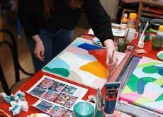 Tijdens de twee workshops switchen we tussen collage en het canvasdoek i.v.m. het droogproces.