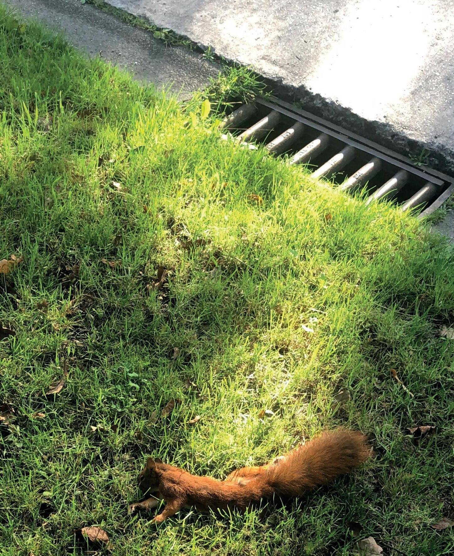 “Maurice, de eekhoorn, heeft het drukke ochtendverkeer niet overleefd.”