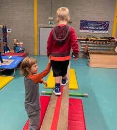 We klimmen, klauteren, balanceren, springen, slingeren, kruipen, sluipen, rollen, rennen, … doorheen parcours vol uitdagingen. We maken kennis met tik-, loop- en balspelen op kleuterniveau!