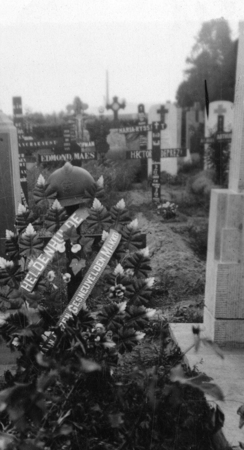 Het familiegraf van sergeant Joseph Decock kort na zijn herbegrafenis in juni 1940.