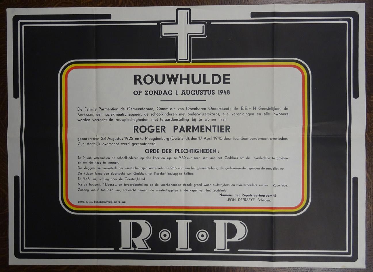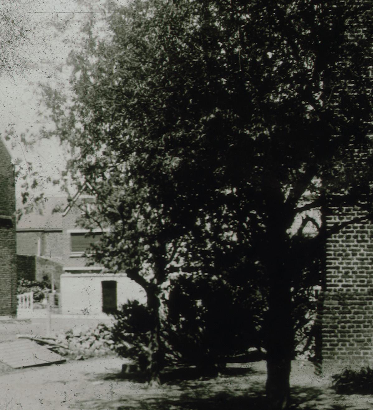Deze foto is vermoedelijk genomen in de tweede helft van 1945 of kort daarna. De naam van de omgekomen gedeporteerde Paul-Maurice Tytgat staat op een bijgevoegde plaquette en de beplanting is nog laag, vergeleken met de foto uit 1948 op pagina 45.