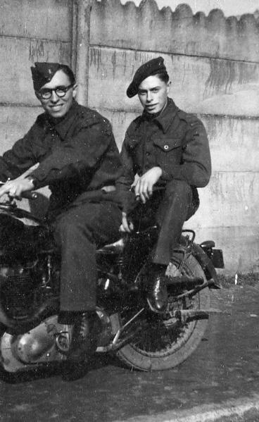 André Verhaeghe (links) en zijn broer Maurice kort na de oorlog. Beiden maakten deel uit van het Geheim Belgisch Leger, afdeling Deerlijk.