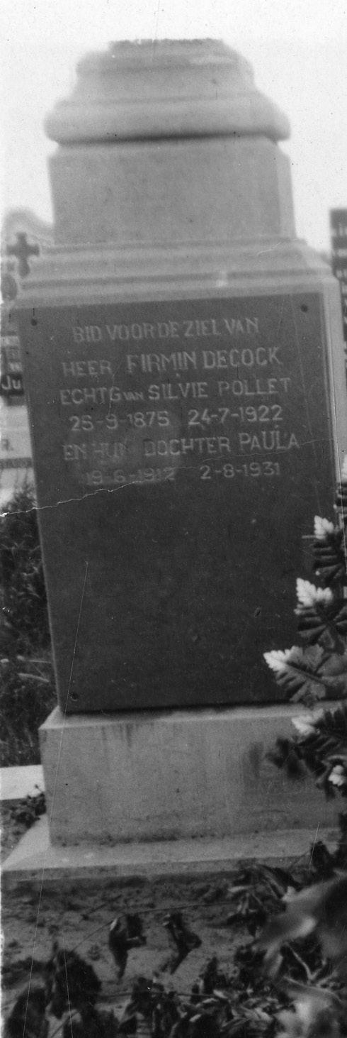 familiegraf van de familie Decock. Daarmee is Joseph de enige Deerlijkse gesneuvelde militair die in onze gemeente begraven is en niet op een oorlogskerkhof. Hij was onderwijzer.