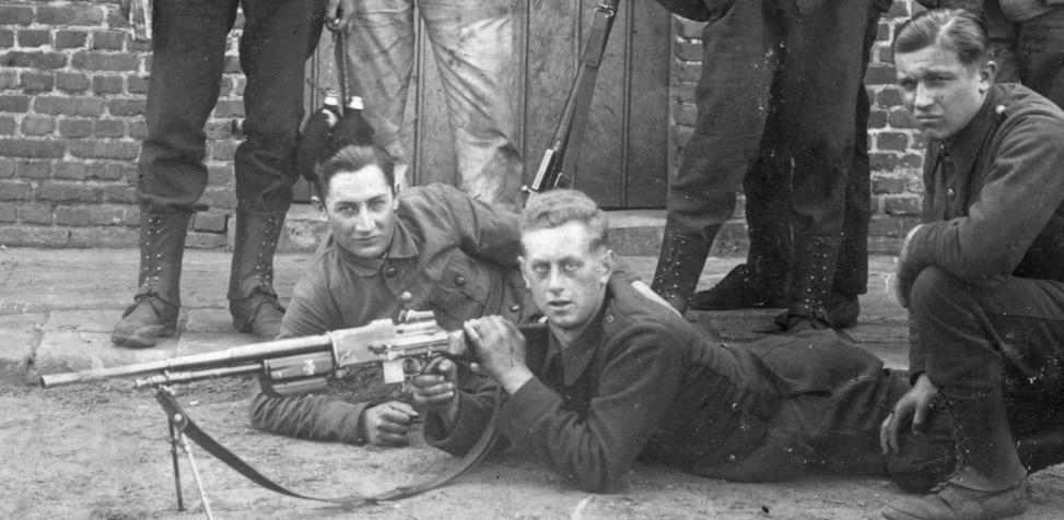 Op het thuisfront was het intussen evenmin veilig. De gevechten kwamen alsmaar dichter. Op 23 mei bezetten de Duitsers onze gemeente. Wat later kwamen zij aan de Leie in contact met de op de andere oever teruggetrokken Belgen en Britten. De gevechten zouden dagenlang aanslepen. Aan beide zijden werden tevens kanonnen ingezet. Soms vuurden die op verder gelegen doelen. Veel granaten van geallieerd geschut kwamen zo ook in Deerlijk terecht. Ze beschadigden heel wat gebouwen. Voor de burgers was het een ware beproeving. Later schreef heemkundige Leon Defraeye hierover: ‘Wij hebben het kelderleven gekend erger dan in 1914-1918.’ Het mag een wonder heten dat er daarbij geen burgerslachtoffers vielen.