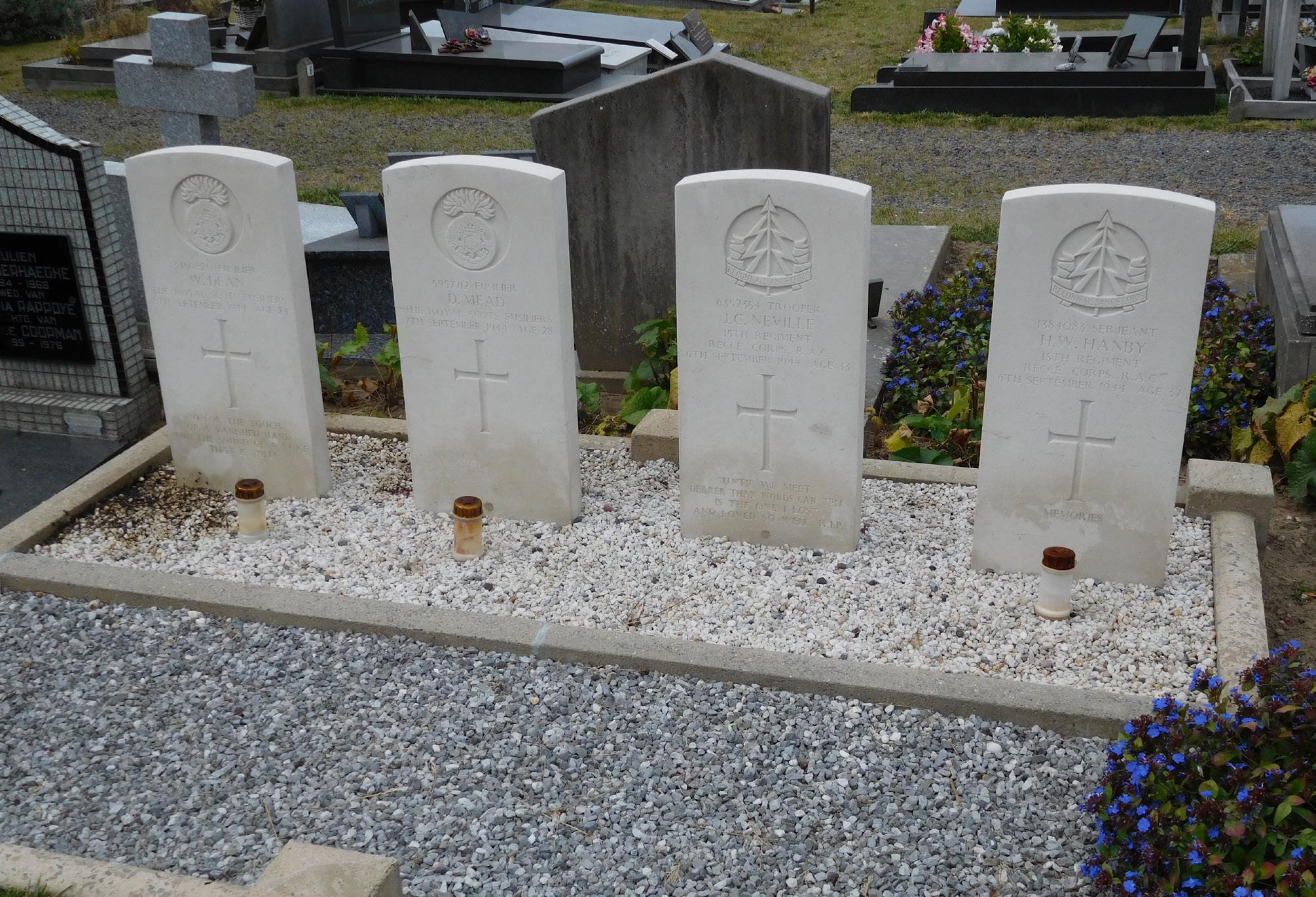 De graven van 4 in 1944 omgekomen Britten, situatie in augustus 2025.