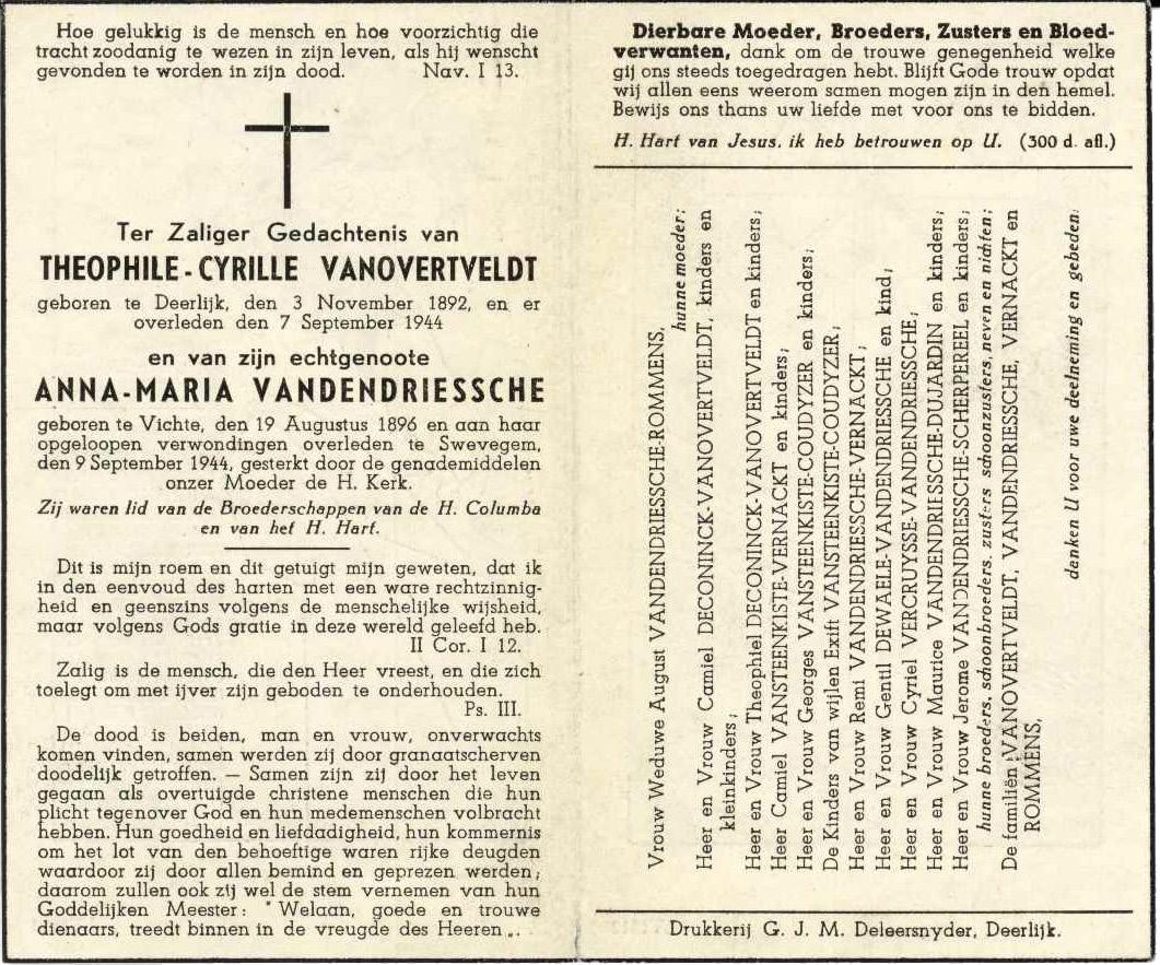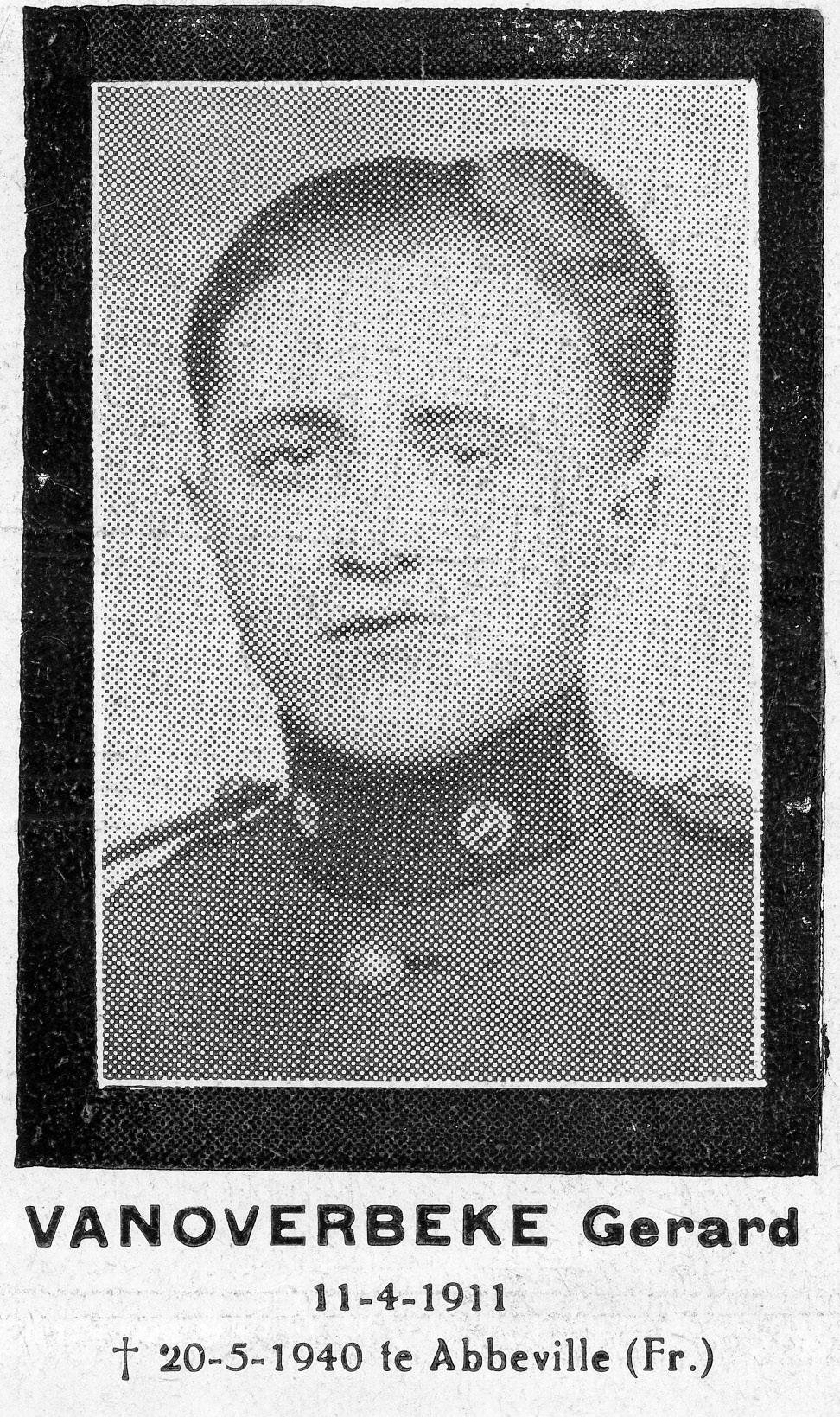 Op 20 mei 1940 stierf soldaat Gerard Vanoverbeke (°1911) bij een granaatinslag in Buigny-Saint-Maclou, een dorpje niet ver van Abbeville in Frankrijk. Diezelfde dag hadden de Duitsers de Kanaalkust bereikt ter hoogte van Abbeville en deze stad en omgeving hevig bestookt met artillerievuur. Gerard maakte deel uit van het 5 e Regiment Karabiniers-Wielrijders. Dat regiment was door de snelle Duitse opmars in het noorden van Frankrijk terechtgekomen. Gerard werd begraven op het gemeentekerkhof van Buigny-Saint-Maclou. In 1962 werd zijn lichaam overgebracht naar de Belgische Militaire Begraafplaats van De Panne. De fabriekswerker woonde pas sinds kort in Sint-Lodewijk.