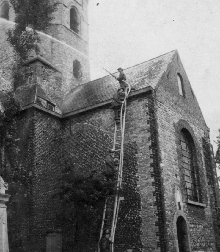 Foto oud oorlogsmonument aan de Sint-Columbakerk (pagina 2 linksonder)