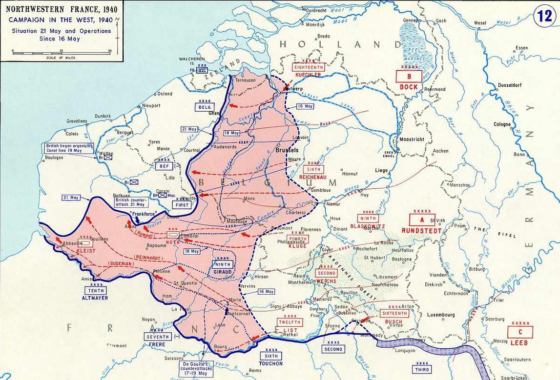 • https://commons.wikimedia.org/wiki/File:1940FranceBlitz.jpg: kaart van de Duitse opmars tussen 16 en 21 mei 1940 (p. 15).
