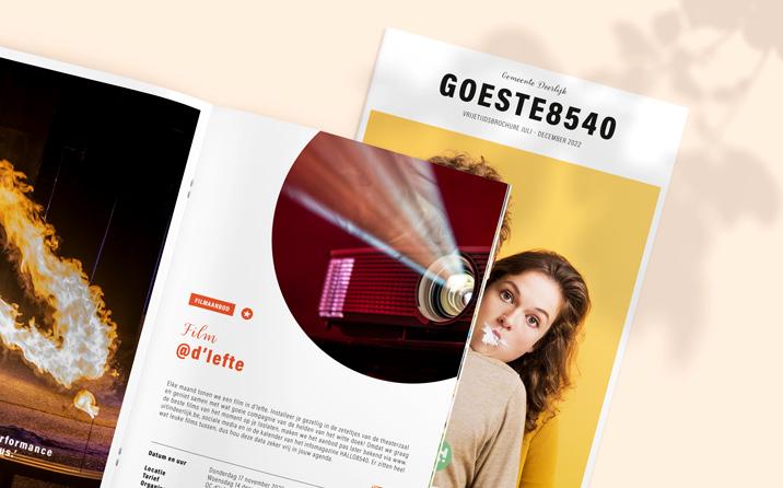 Wat we juist uit onze mouw schudden voor deze zomer en het najaar, dat ontdek je in de spiksplinternieuwe vrijetijdsbrochure GOESTE 8540 . Als alles goed ging, viel deze brochure begin juni bij jou in de bus. Met de activiteiten uit de brochure vul je in geen tijd jouw agenda van juli tot en met december in, ongeacht jouw leeftijd of interesse. Want we brengen weer heel wat cultuur, sport, avontuur en nog zoveel meer tot bij jullie. Zin om erop uit te trekken? Neem dan jouw vrijetijdsbrochure bij de hand of scan de QR-code in met jouw smartphone en doorblader het digitale exemplaar. Je moet enkel nog kiezen tussen de vele activiteiten – moeilijk kiezen, we geven het toe – en dan boek jij snel en makkelijk jouw tickets online.