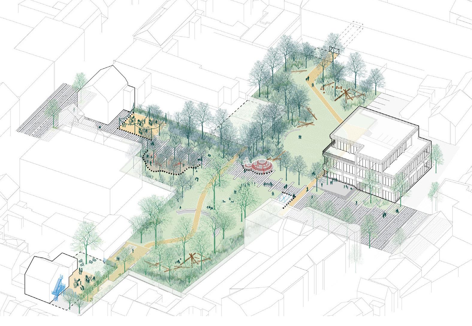 site in. Zij verdwijnen op termijn. Het ontwerp vatten we daarom op als een faseerbaar park, dat we maximaal ontharden en vergroenen in de 1 e fase.