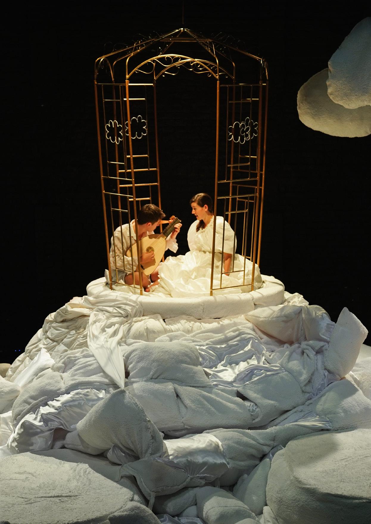 Anastasiia Liubchenko is met het concept, de regie en de vormgeving van Oma op dezelfde wijze te werk gegaan als haar bekroonde voorstellingen Geel en Thuis met muziek van Thijs Felperlaan.