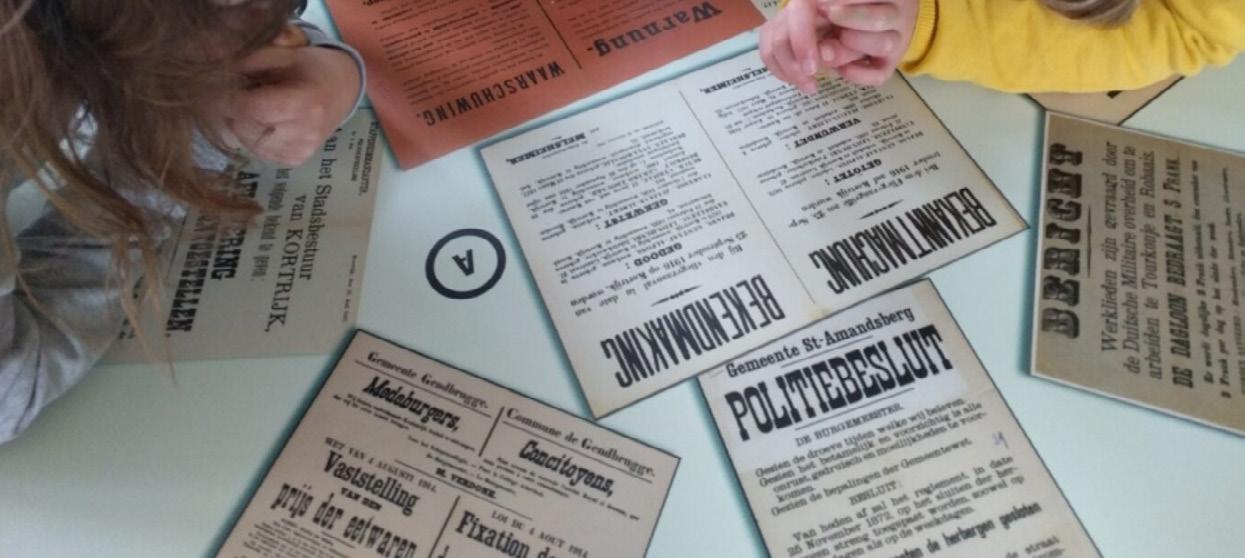 Met het educatief pakket ‘Bezettering 14-18’ kan je creatief aan de slag met enkele tekstaffiches uit de Eerste Wereldoorlog. Tijdens de Duitse bezetting van WOI was informatie in Zuid-West-Vlaanderen een schaars goed. Van internet, televisie of radio was geen sprake, brieven en kranten werden gecensureerd. De enige informatie die de inwoners kregen waren afkomstig van tekstaffiches uitgedragen door de Duitsers. Bijna dagelijks verschenen nieuwe affiches in het straatbeeld. De leerlingen maken kennis met de omstandigheden tijdens de Eerste Wereldoorlog en gaan zelf aan de slag met de affiches. Zoek informatie op de affiches tijdens de affichequiz, ga aan de slag met taal en drama of maak een eigen affiche!
