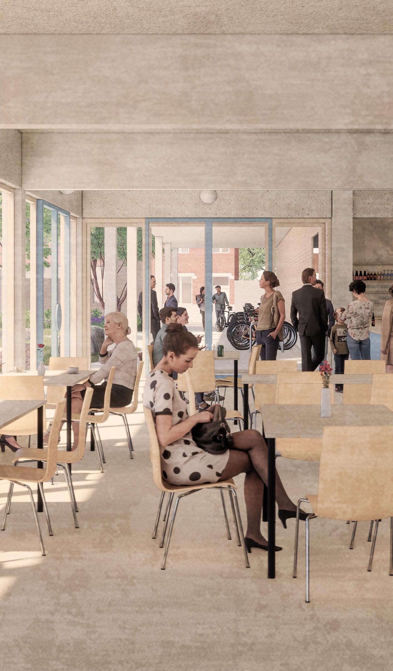 van de grote zaal tot een minimum te beperken, zetten we sterk in op het gebruik van geluidsisolerende materialen”, vertelt Maxime Czvek. Zijn er kleinere evenementen of vergaderingen dan kan de kleine zaal afzonderlijk gebruikt worden. “In deze ruimte gebruiken we veel glas, zodat er een mooie interactie ontstaat tussen de groene buitenruimte en de zaal. Bij mooi weer zal het uiteraard ook mogelijk zijn om een deel van de activiteit buiten in het park te laten doorgaan.”