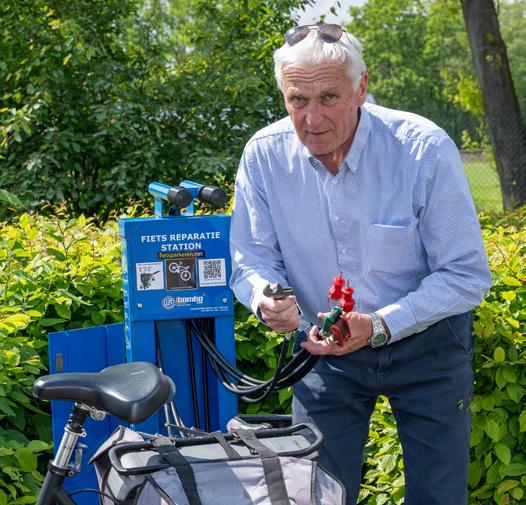 Niets zo vervelend als een heerlijk fietstochtje maken en dan onderweg technische problemen aan je fiets krijgen. Dat ondervond ook Jack van der Laan. Met de fietsherstelzuilen die je op vele plaatsen in Pelt vindt, kon hij zijn fiets makkelijk herstellen.