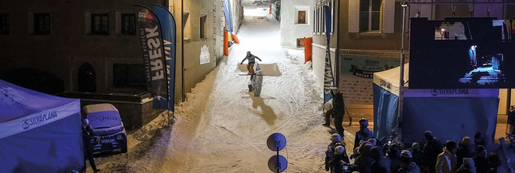 Beim Street Contest «Silvaplana Rocks the Rail» werden auf der alten Julierpassstrasse spektakuläre Sprünge und Tricks präsentiert. Bis 15.30 Uhr gehört die Bühne den Kindern, bevor um 17.00 Uhr die Freestyle-Profis ihre eindrucksvollen Läufe starten. Mit dabei sind erneut der Silvaplana Ambassador und Profi-Snowboarder Jeremy Denda sowie der Corvatsch-Botschafter Nicolas Huber.
