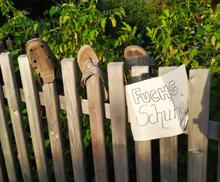 Gartenlatschen, Wanderschuhe, Gummistiefel … - vieles, was am Abend auf Terrassen und vor Haustüren nicht reingeräumt wird, droht derzeit nachts zu verschwinden, wenn der Fuchs ums Haus streicht. An zahlreichen Zäunen haben freundliche Mitmenschen oftmals die geklauten Exemplare so positioniert, dass man mit etwas Glück einen vermissten Schuh wiederfinden kann.