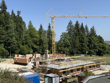 Im Erdgeschoss sind die Mauerarbeiten abgeschlossen.