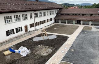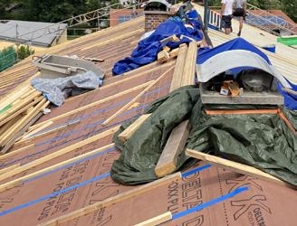 Aufgrund der großen Schäden an der Dachdeckung durch den Hagel im August 2023 musste die Dacheindeckung abgenommen und erneuert werden.