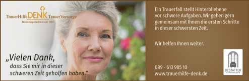 Trauerhilfe Denk 089 / 608 610 30 individuelle Bestattungsvorsorge Ottbrunn, Unterhachinger Straße 1 www.trauerhilfe-denk.de