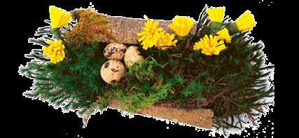 Der Huflattich heißt Tussilago, das bedeutet „Ich vertreibe den Husten!“ Huflattich wird schon seit langer Zeit für Hustentees und Hustenbonbons verwendet. Die Blüten im Osternest habe ich aus Moosgummi gebastelt.
