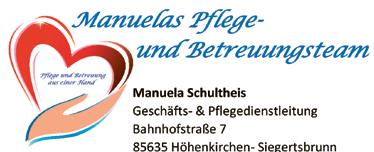 Manuelas Pflege & Betreuungsteam Grund- und Betreuungspflege bis zur Bahnhofstraße 7 0176/39 87 26 68 hauswirtschaftlichen Versorgung