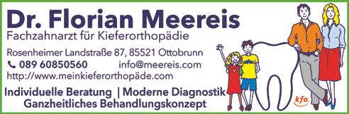 Dr. Florian Meereis 089 / 608 505 60 Fachzahnarzt für Kieferorthopädie, Ottobr., Rosenheimer Landstr. 87 Individuelle Beratung, Moderne Diagnostik