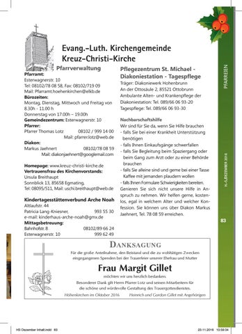 Frau Margit Gillet möchten wir uns herzlich bedanken. Besonderer Dank gilt Herrn Pfarrer Lotz und seinen Mitarbeitern für die schöne und würdevolle Gestaltung des Trauergottesdienstes. Höhenkirchen im Oktober 2016