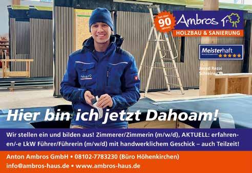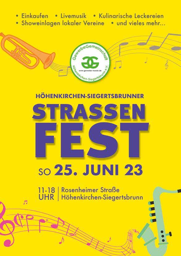 2 GaragenFlohmarkt 29. Juli im gesamten Gemeindegebiet H.-S./JUNI 2023 Zukunftswerkstatt AK Kind & Familie 46 AK ZusammenLeben 47 Ortschronik 50 Jahre Gemeindeblatt 1983-1993 48 Veranstaltungskalender Juni bis August 2023 49 Kindergärten . Schulen . Hort Münchner Ferienpass/AWO-Zwergerlstube 54 Großtagespflege Zwergenglück 55 Großtagespflege Villa Glückskind 58 Elterninitiative Sonnenschein 59 Kath. Kindergarten Mariä Geburt 60 AWO-Waldkindergarten 61 Evang. Kindergarten Arche Noah 63 Caritas Kinderhaus Teresa-Maria 65 AWO-Kinderhaus Pfiffikus 66 Sigoho-Marchwart-Grundschule 67 Jugend BlueBox 68 Senioren VdK/AK Demensch 69 ASS Veranstaltungen 70 Wohnen am Schlossanger GmbH 73 Digital-Café 74 Weiterbildung Gemeindebücherei 76 Kulturelles Leben Blaskapelle Höhenkirchen-Siegertsbrunn 78 Besinnlich in den Sonntag/Leonhardi-Ensemble 79 Pfarreien Katholischer Pfarrverband 80 Evang.-Luth. Kirchengemeinde 83 Vereinsnachrichten Vereinsregister und Berichte 86 Medizinische Versorgung Ärzte, Zahnärzte, Therapeuten 106 Notdienste 108 Service Branchenverzeichnis unserer Werbepartner 110 Impressum 112 INHALTSVERZEICHNIS Wir sind für Sie da! Sprechen Sie mit uns: Kostenlos, unverbindlich und individuell. Manuela Schultheis Geschäfts- & Pflegedienstleitung Bahnhofstraße 7 85635 Höhenkirchen- Siegertsbrunn Tel: 08102-9998913 info@manuelas-pflegeteam.de