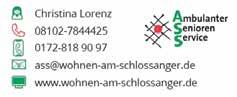 78 444 25 oder 0172 / 818 90 97 ass@wohnen-am-schlossanger.de