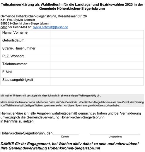Herausgeber: Gemeinde Höhenkirchen-Siegertsbrunn, Erste Bürgermeisterin Mindy Konwitschny, Rosenheimer Str. 26, 85635 Höhenkirchen-Siegertsbrunn, Tel.: 08102/880, rathaus@hksbr.de
