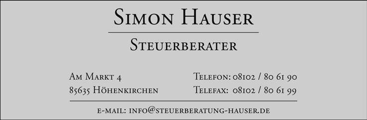 Steuerberater Simon Hauser 80 61 90 Steuerberatung, Steuerdeklaration, Finanz- u. Am Markt 4 Lohnbuchhaltung und Jahresabschluss