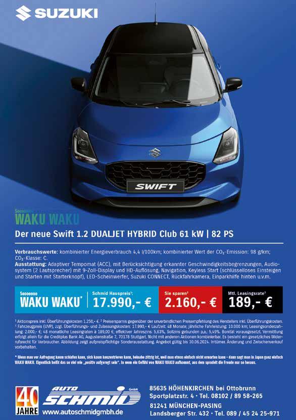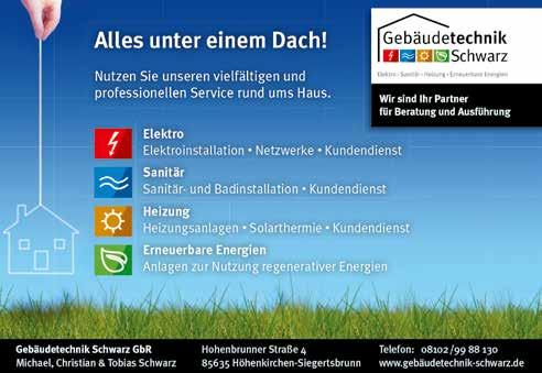 Titelbild: Auf vielen Linien fahren seit kurzem Wasserstoff-angetriebene Busse. Ein Teil der Technik ist nur von oben sichtbar. (Foto: Karin Sieber, typeo) Redaktionsschluss: 2. Montag im Monat (siehe auch Hinweise im vorliegenden Heft) Hinweis: Die Redaktion behält sich Kürzungen der eingereichten Texte und die Auswahl der Fotos vor. Namentlich gekennzeichnete Beiträge geben die Meinung des Verfassers wieder. Für den Inhalt der Anzeigen wird keine Haftung übernommen. Ein Nachdruck, die Reproduktion und Vervielfältigung von Fotos und Anzeigen aus dem Gemeindeblatt – auch auszugsweise – sind verboten. Das Gemeindeblatt Höhenkirchen-Siegertsbrunn ist ein Druckerzeugnis im Sinne des Presserechts und kein offizielles Amtsblatt.