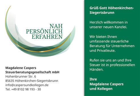 Caspers Steuerberatungsgesellschaft mbH mc@caspersundkollegen.de Hohenbrunner Str. 6 98 193-30