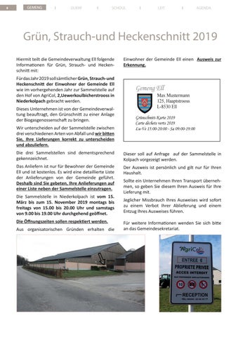 Gemeng Ell Max Mustermann 125, Haaptstrooss L-8530 Ell Grünschnitt-Karte 2019 Carte déchets verts 2019 Lu-Ve 15:00-20:00 - Sa 09:00-19:00