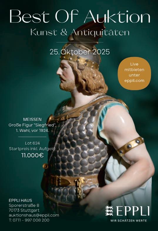 Sammler und Sammlerinnen, die in der monatlichen EppliAuktion im neuen Haus in Stuttgart Spielzeug und die kleinen, beliebten Pretiosen vermisst haben, können sich auf den 17. und 18. Oktober in der Eppli Auktionshalle in Echterdingen freuen. Spielzeuge vom Püppchen bis zur historischen Eisenbahn, Porzellan und Keramik, Glas und Silber, große und kleine Skulpturen, Gemälde und Grafik, asiatische und afrikanische Objekte und chinesische bis persische Teppiche werden an zwei Tagen offeriert. Spannende Varia-Lose und eine Sondersparte mit Ikonen sind ebenfalls im Programm. Es kann in über 600 Positionen gestöbert und wie gewohnt im Saal und online geboten werden. Ein Beispiel für die Vielfalt und Qualität von Steiff ist ein fünfteiliger Setzkasten mit über 50 Plüschtieren aus den 1970er- bis zu den 2000er-Jahren. Von der Bully-Bulldogge bis zum Foxy-Terrier, von den Petsy-Bären bis zum Zotty-Bär sind Tierchen unterschiedlicher Gattungen mit Knopf, Fahne oder Brustschild versammelt. Der Aufrufpreis beträgt 280 Euro. Ein Steiff-Teddybär in silbergrauem Mohair kommt aus der „Mercedes Benz Collection“ von 1999 und wird bei 90 Euro aufgerufen. Eine Porzellankopfpuppe von Simon & Halbig aus dem beginnenden 20. Jahrhundert ist mit mindestens 800 Euro dotiert. Die Märklin-Zugpackung „Rheingold 1928“, die auf 2.999 Stück limitiert ist, startet bei 400 Euro. Am Samstag werden Gemälde und Grafiken aufgerufen mit Porträts aus der Familie Doertenbach (650 Euro), einem Ölgemälde einer holländischen Stadt von 1880 von Karl Kaufmann (1.100 Euro) sowie einer Lithografie von Hans Arp („Abstrakte Komposition“, 19/50, 800 Euro). Zu ersteigern sind weiterhin Silberobjekte wie Gefäße, Tischdekorationen und Bestecke,