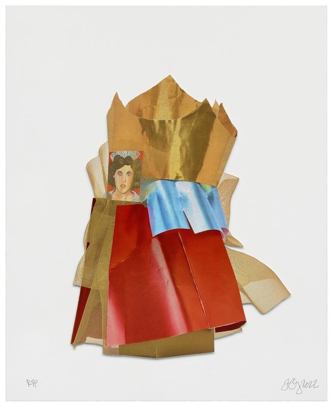 Multi-color screenprint/collage with gold leaf and portrait by Alejandro Gehry, mounted to museum board 16” x 13” (40.64 x 33.02 cm) Edition of 50