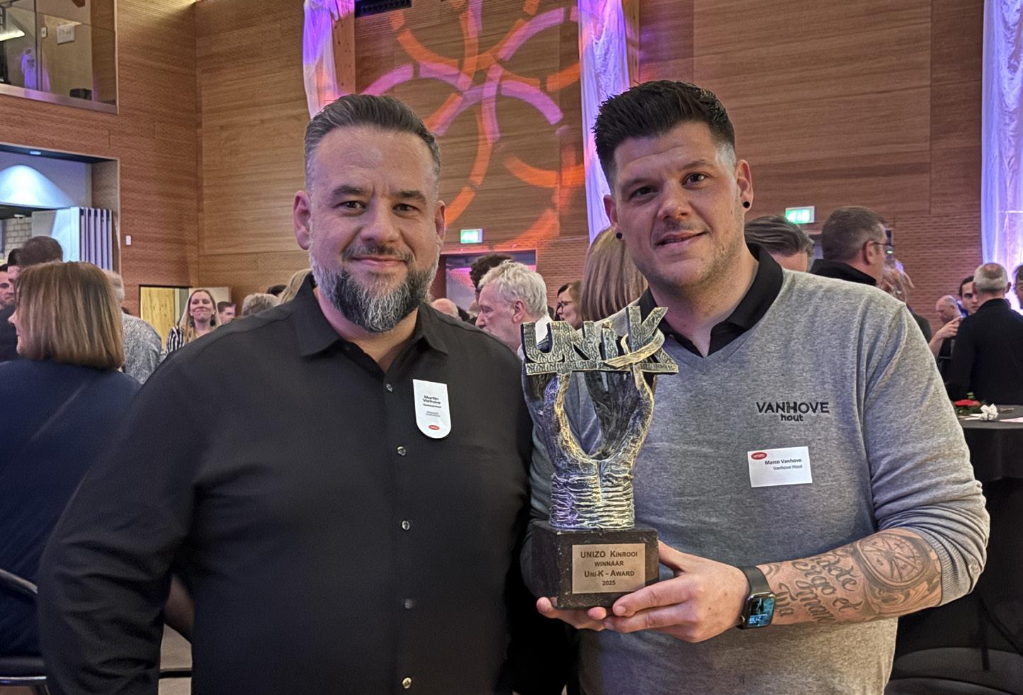 foto cover Martijn en Marco Vanhove met de Uni-K award voor Vanhove hout