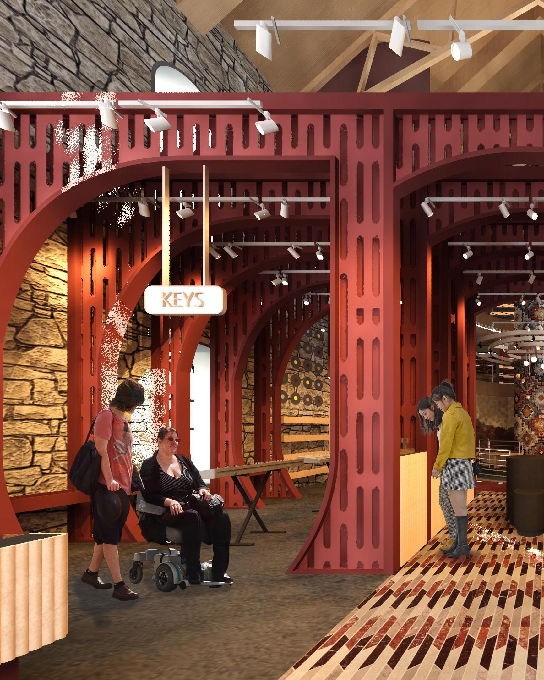 The project consisted of designing a new retail establishment that takes into consideration the demographics of the area, recent retail trends and connection to community. The borough of New Hope, Pennsylvania is known for its very artistic and historical presence. Its streets and blocks are flooded with unique small businesses and stores from clothing stores to bakeries. However, it lacked one thing, a musical instrument store.